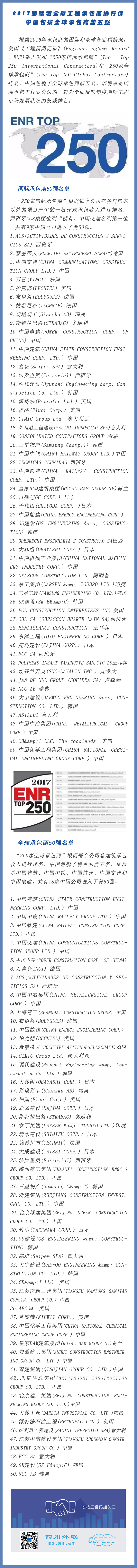 2017國際和全球工程承包商排行榜