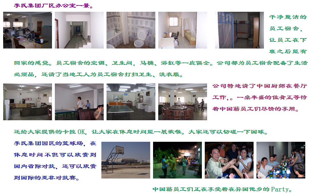 食宿情況:免費提供食宿。每日三餐和下午茶,飲食和我們中國一樣有米飯,面條,饅頭等,有各種蔬菜,魚、牛肉、豬肉、雞等。住宿有空調(diào),家具和衛(wèi)生設施等。