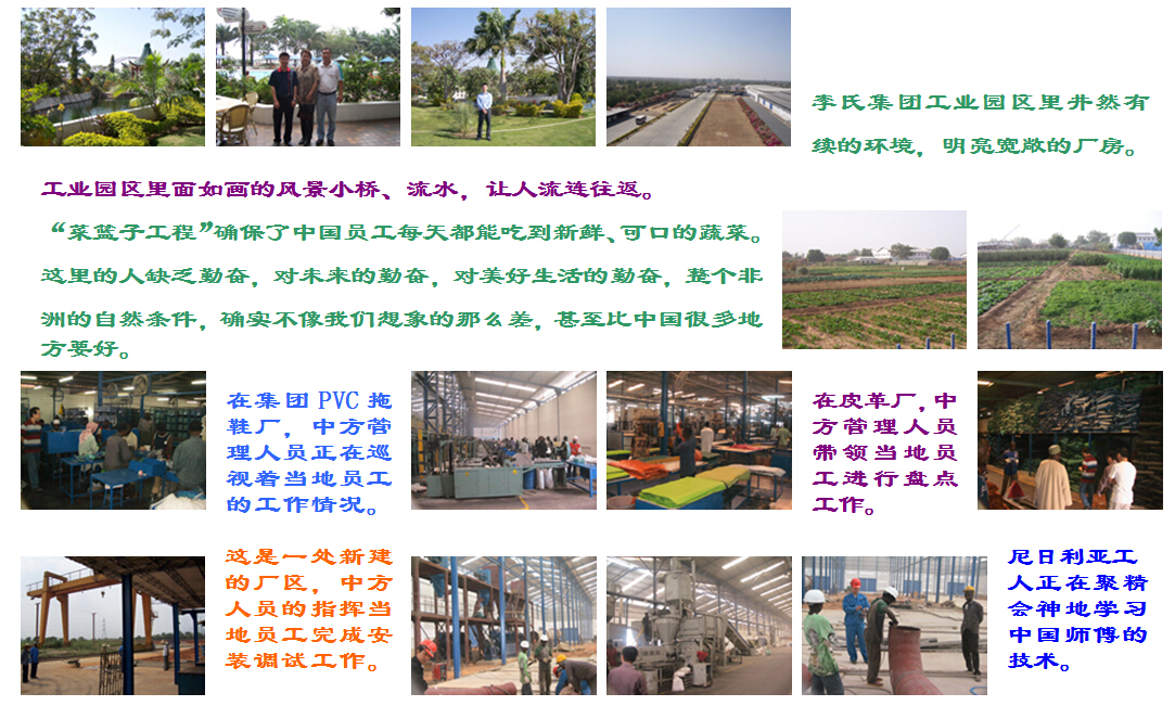 尼日利亞港資集團總部設在香港,尼日利亞已有四十多年的歷史(從一九六四年四月一日起開始建廠),并在加納、象牙海岸,毛里求斯,馬達加斯加等國家投資有50多家工廠,涉及的領域有塑料拖鞋、鋼鐵、橡膠袋、搪瓷、塑料母粒、印刷、機械、運輸、建筑等。產(chǎn)品行銷尼日利亞全國,出口至非洲其他國家以及歐美等十多個國家和地區(qū)本集團十分重視環(huán)境保護,還設有多家廢料回收再生產(chǎn)廠,不僅變廢為寶,而且還為非洲人口創(chuàng)造了大量的就業(yè)機會,現(xiàn)有當?shù)貑T工一萬多人。