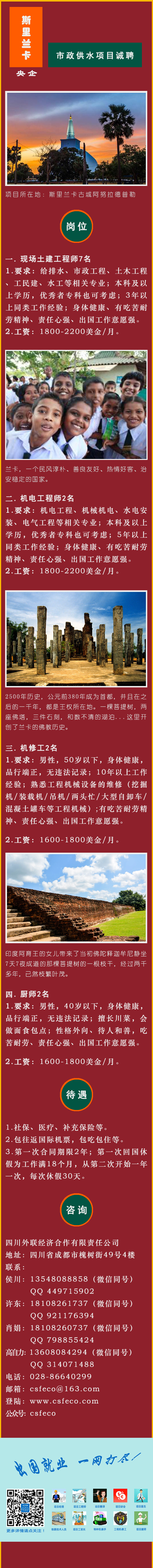 央企斯里蘭卡市政供水項目招聘